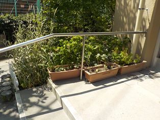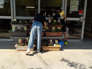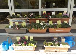 自分が寄せ植えをしたお花を探して、名札を立てています。