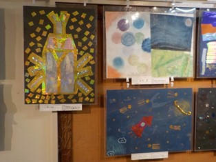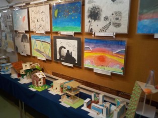 6年生の展示です。絵画も工作も、細部までぬかりなく作品を仕上げていました。