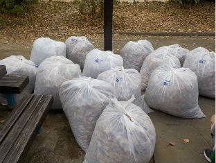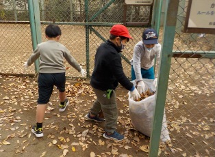 落ち葉を集めたり雑草を抜いたりして、