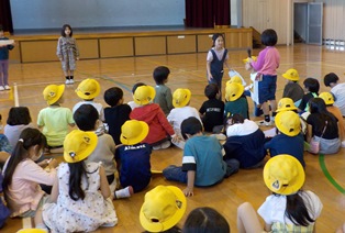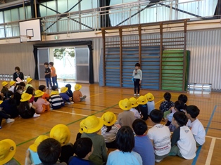 2年生はお兄さんお姉さんになった自信を、1年生はこれから使う教室について大きな期待をもっていました。 |