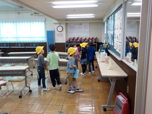 1、2年生が一緒に学校たんけんを行いました。