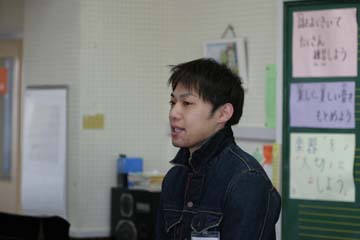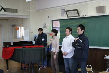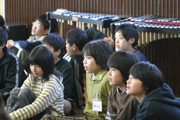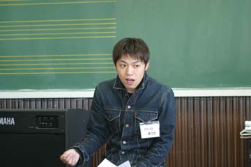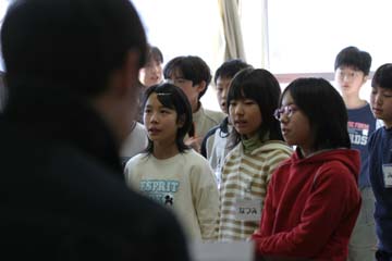 | 今日から、卒業公演のための歌の練習がはじまりました。歌詞は、子どもたちの言葉から作曲は、西野誠さん。作曲を担当した西野さんが、歌の指導を担当します。 |