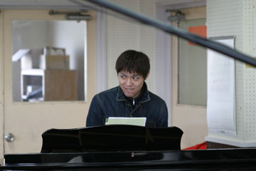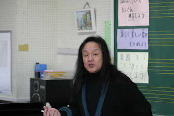 音楽担当の西野さんとの歌の練習。今日は、2曲目に入りました。はじめとはちがって、ちょっとアップテンポの曲です。 |
