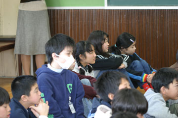 | 青井さんから、「さよなら きのう まってて あした」の内容についての話がありました。まだ、子どもたちには台本が渡されていないのでちょっとわかりにくいところもありましたが一応の内容をつかめたはずです。 | |