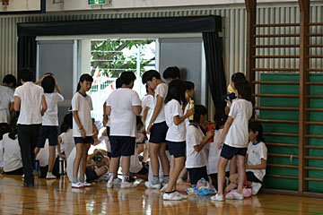 各自もってきた水筒で水分補給。 |
