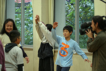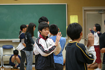 はやい動きからおそい動きに、短い動きから長い動きに少しずつかわってきました。慣れてきたところで青井さんが手をたたいたら、交代する。などきまりがふえてきます。 |