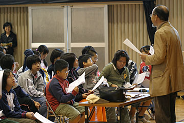 完成した歌を、小椋さんの指導のもと、少しずつ覚えていきます。