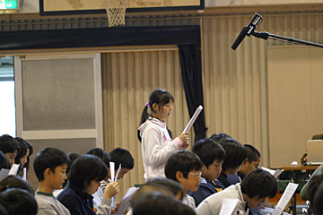 | 詩を書いた本人に朗読してもらい、いい点やここをこうなおした方がいいよというアドバイスをいただきました。 | |