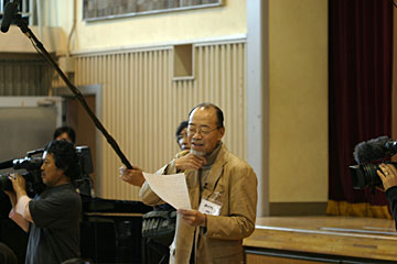 子どもの書いた詩の中から、4つの詩をさらに選び、小椋さんが手直しを加えて、歌にしていく過程をお話しされました。 |