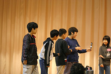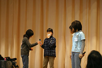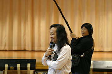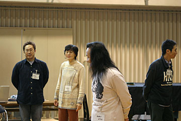 立つ位置や、マイクの渡し方など一番よさそうな方法を確かめていきます。 |