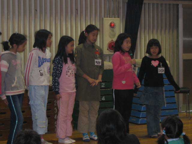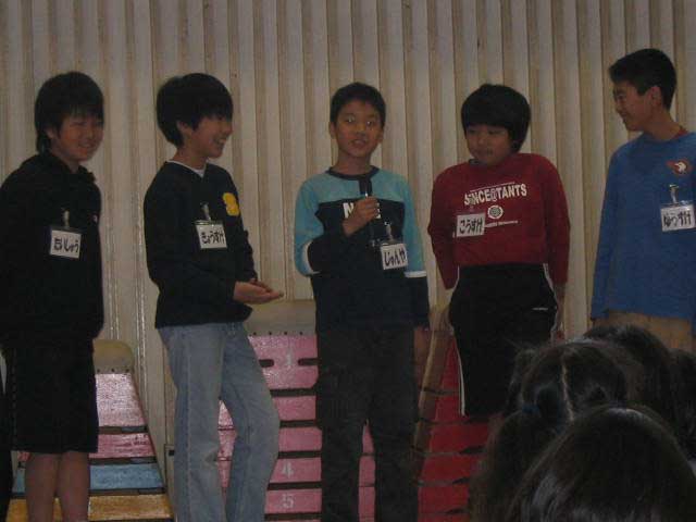 「他己紹介」も進むにつれて、友達の楽しいエピソードがとび出すなど、内容の工夫も見られました。聞く側が飽きないような話し手のさりげない配慮が見られました。 |