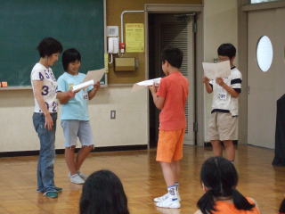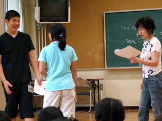 宮校長先生、森江先生、香西先生が演じてみました。子どもたちも大喜びでしたが、それと同時に、「よし、自分も」という意欲が、ますますわいてきたようでした。