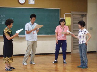 あらかじめ、台本で演じるグループと即興劇を演じるグループに分かれており、始めは台本で演じるグループの人で行いました。吉田さんがお母さんになったり、反対に子ども役になったりして、2人組で「親子げんか」を演じてみました。