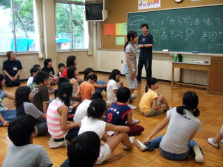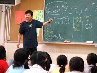 「声」の何を変えると「声」が変わるか〜声で遊んで表現力をUP〜「気持ちを変えると声は変わる。気持ちでなく、声そのものの何を変えると声は変わるか?」すぐに出てきたのは、「高さ」と「大きさ」。 「質」、「速さ」、「間」についても教えていただきました。 実際にやってみて、随分違うことに気付く子どもたち。 |