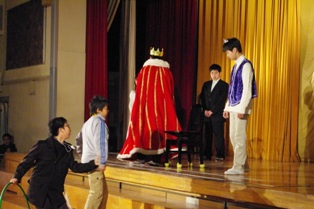 王様、判定は!?「・・うーん。難しいが、今回の勝負は・・」 |