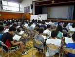 9/9(土) 道徳授業地区公開講座 いのちの教育月間の取組の一つとして、元小学校道徳研究会長である後藤忠先生をお招きしました。6年生への道徳授業では新見南吉さんの「屁」を教材にしっかり自分の心を見つめ、保護者・地域の方向けに「生きる力をはぐくむ」と題して、大人としてどう子どもたちを育成するか御講演をいただきました。縁を生かすという話から、教師としての在り方を考えさせられました。 1年生から5年生もそれぞれの題材で道徳の授業を公開しました。 6年生 道徳授業 講演会 被爆者の方の話を聞く ![]() |