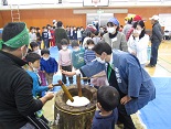 | 12/16(土) もちつき大会 絶好の晴天の下で恒例のもちつき大会が実施できました。かなり前からPTAや地域では準備をしていた だき、けがもなく順調に行うことができて大変ありがたく思っております。臼は地域の森田さん、篠さん宅か ら借り、当日の運営は支援本部の篠原さんを中心に進めました。準備から片付けまでお手伝いをいただい た皆さまに、改めて感謝を申し上げます。 子どもたちは学級ごとにもちつき体験をして、杵でつくときには大きな声で「よいしょ!」と声をかけました。 6年生はのし餅にするお手伝いもさせていただきました。一人2枚ずつの切り餅を持って帰り、家庭でおいし くいただきました。 地域・町会の皆さま、PTA役員をはじめとした保護者の皆さま、本当にありがとうございました。 |