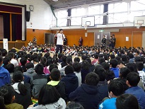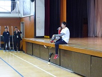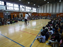 | 11/15 夢・未来プロジェクト リオオリンピック・パラリンピックのパラリンピック走り高跳びで4位に入賞した鈴木徹選手をお迎えして、 全校児童でお話を聞いたり高跳びを実演したりしていただきました。お話では、交通事故に遭われたことを きっかけに走高跳びを始めたこと、すぐに日本記録を出せたこと、今年の世界選手権で初めでメダルをも らったことなどを話してくださいました。子どもたちには、今「一つのことを始めても良い結果が出るまでには 時間がかかります。そして、今みんなが頑張ることは、外で遊ぶことと勉強です。体を動かし、勉強して頭を 鍛えることが大切です。」と語りかけてくださいました。 次の時間は、5年生に直接走り高跳びの指導をしていただきました。積極的に楽しそうに取り組む児童の 姿が印象的でした。子どもたちの将来のために貴重な時間となりました。 |