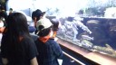 早朝までの嵐のような天気が急速に回復して、良い天気の下で実施できました。荻窪消防署のポンプ車と照明車が子供たちのモデルになってくれました。途中で緊急連絡が来てポンプ車が出動しまた帰ってきて、まさにはたらく消防車と消防士の姿を見せていただきました。1年生と2年生の子供たちは、間近で見た消防車と消防士さんを一生懸命描いていました。 |