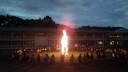 本番まであと3日、校庭での練習も進んできました。動きを覚え、みんなの気持ちも揃ってきました。1~5年生は道具を持ったり衣装を着たり、6年生は衣装や持ち物なしで、どの学年も力いっぱい表現します。指導する先生はマイクの使用を必要最小限にしており、子供たちは集中して聞き、気持ちを高めながら真剣に練習しています。写真は6年生・5年生・4年生の練習風景です。 |