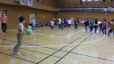 1年生になって2か月経ち、子供たちは学校に慣れて元気いっぱいです。初めてのハチナリンピックで踊るダンスを、先生の手本を見ながらはりきって楽しそうに踊っていました。全部覚えて頑張りました。 |