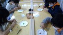 八成小学校での最後の調理実習は、子供たちのリクエストでクレープづくりです。生地を薄くきれいに焼き、イチゴとバナナを乗せ、クリームやチョコレートでトッピングして、みんなで協力しながら楽しそうに作っていました。 |