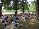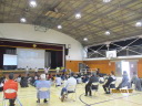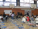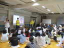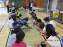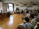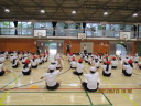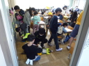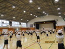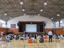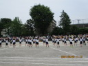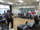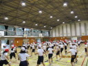 明日はハチナリンピック本番です。これが最後の練習、子供たちも先生も真剣です。明日は暑くなる予報のため出番以外は体育館待機とし、今日のリハーサルでペア学年の演技を鑑賞することにしました。拍手をもらって、自信をもって明日も頑張ります! |