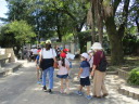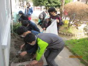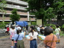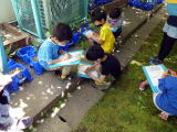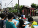 社会科で「わたしたちの杉並区のようす」を学習している3年生は、学校の周りを歩いて調べてみました。1組は学校の南側、2組は西、3組は北を分担して探検です。花やトマトを育てているビニールハウス、小さな祠、大きな通り等を地図で確認しながらメモしています。子どもたちは、地域の様子をよく見て勉強しています。 |