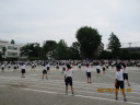 このところ梅雨入りしたような雨続きでしたが、今日は朝から校庭は良いコンディションです。暑くもなく、ハチナリンピックの練習がしっかり進みます。3年生の子供たちは、先生の指示をしっかり聞いて、広い校庭でも1回で隊形移動ができました。どの学年もだんだんと動きがスムーズになって、やる気が伝わってきます。 |