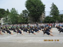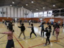 速いリズムにのって、足の動きや隊形移動がきれいに揃っていました。 |