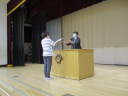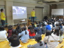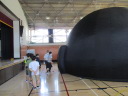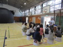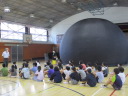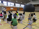 済美教育センターから八成小学校の体育館にプラネタリウムがやってきました。クラスを半分に分けて、センターの理科の先生に星座早見盤の使い方を教えていただいたり、ドームの中に入って星の動きを見たりしました。これから夏の夜空を家の人と眺める機会があるかもしれませんね。 |