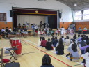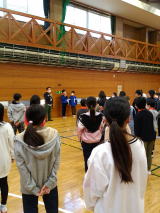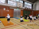 今週の土曜日がハチナリンピック本番です。当日は3部制のため、1・2年、3・4年、5・6年がプログラム3部ペアになって出場します。他の学年は、練習中に見るチャンスがあれば互いに刺激を受けています。今日は1校時に2年生と3年生が演技を見合うことができました。自然に拍手を送って称えあい、子どもたちは練習してきたことへの自信がついたようです。 |