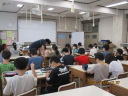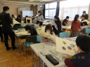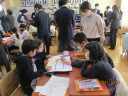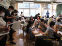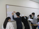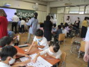 論理的な思考について学ぶために、VSNから講師をお招きしてグループで取り組みました。登場人物の行動が書いてあるたくさんのカードを論理の矛盾のないように並べていきます。相談しながらストーリーを考えていく様子は、どのグループも楽しそうでした。人の考えと自分の考えを合わせながら、筋道を立てて考えていくことは、これから中学生になってからも必要な力ですね。 |