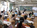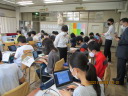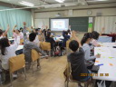 八成小学校の先生たちは生活科と総合的な学習についてみんなで勉強してきました。どの学年も研究授業をしてきて、今日は2年生が「はっけん 自分のよいところ」の研究授業でした。ロイロノートを使って、友達のよいところをカードに書き、相手に送ります。子供たちは、互いにカードを送りあって、楽しそうでした。自分のよさを友達に教えてもらって、うれしいですね。子供たちが帰った後は、今日の授業について先生たちが話し合い、講師の先生にご指導いただいて、より良い授業を目指しています。 |