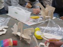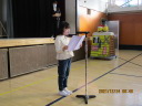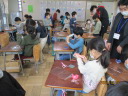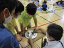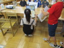 JAXAの中にある「子ども・宇宙・未来の会」から講師をお招きして今まで4年生、2年生が「ものづくり」をしてきました。今日は今年度最後の回、ゴムで動く仕組を勉強する3年生は、伸びた輪ゴムの縮む力を利用して飛ぶ紙筒ロケットを作りました。最初と比較して、筒にビニールテープを巻くと回転せずに勢いよく飛ぶことが分かりました。短い筒と長い筒で飛び方の違いも、ぜひ試してみてください。実際にやって分かったことから、「なぜだろう?もっと調べてみたい。」と興味を広げていけるとよいですね。 |