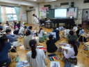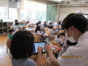 集会委員会の企画で楽しいゲーム集会を全校でできました。委員の子供たちが各クラスに出向き、問題を出して、前から後ろに順番に絵で伝えるというゲームです。1・2年生は紙に絵を描き、3~6年生はタブレットでキューブキッズのお絵描きモードを使って、素早く描いていきます。列の一番後ろの人が絵を見せると委員さんが「当たり!」と言ってくれて、みんな絵で伝えるのが上手でした。一斉に集まれなくても、アイディアを出し合って工夫していますね。 |