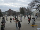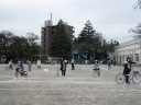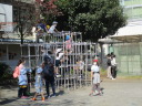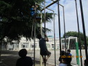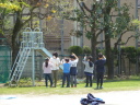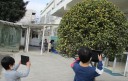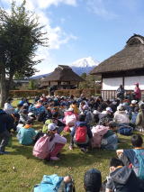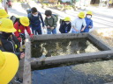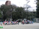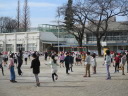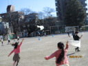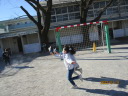 今日は冬晴れ、昼間の太陽が木の影を地面に長く伸ばしています。冷たい北風が吹く中、子供たちは元気いっぱいです。たこあげをしたり、かざぐるまを持って走ったり、かざわを回したり、と、自分が作ったおもちゃで風を利用して遊んでいます。広い校庭で思いきり走り回って、みんな楽しそうです。 |