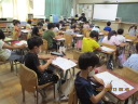 これはクラス替えをしたばかりの2年生の始業前の様子です。先生をしっかり見て話を聞いたり、学校のきまりを確認したりして、このクラスで仲良く過ごしたい、頑張りたいという子供たちの気持ちが伝わってきます。きっと力を合わせて、すてきなクラスをつくっていくことでしょう。 |