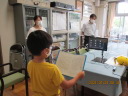 昨日は立夏でした。連休中は晴れと雨と雷で不安定なの天気続きでしたが、季節は春から夏へと進んでいます。今朝はどんよりした空も昼前には五月晴れとなり、カラッとさわやかな一日です。それでは晴れと曇りとのちがいは何でしょう?空全体で雲の割合が0~80%なら晴れ、「雲観測ドーム」を使って子供たちが調べたら80%位だったので、曇っているようでも晴れということです。では、どんな雲があるでしょう?高さは?種類は?自分の経験から予想を立て、考えを交流させながら、「調べたい」という興味が膨らんできました。 |