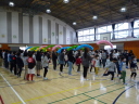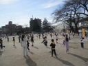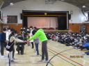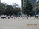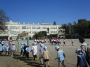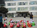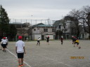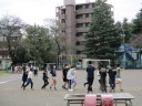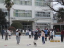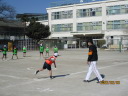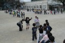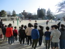 今日は立春、とはいえ曇り空の冬寒です。でも、休み時間は子供たちが「待ってました」と校庭で元気に遊んでいます。金曜日の中休みは、高学年の短縄タイムです。テンポの良い音楽に合わせて、みんなで取り組んでいます。輪になって、先生と、友達と向き合い、など、自由に楽しく跳んでいます。 |