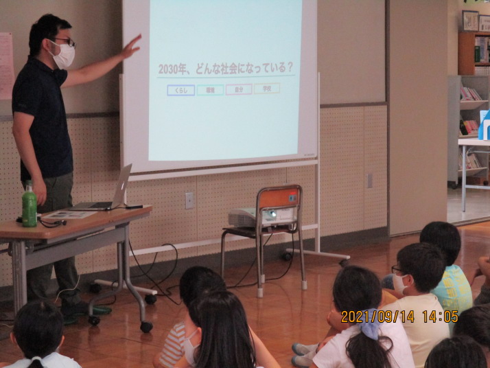 写真は、5年生のSDGsプロジェクト報告会の様子です。各グループで調べてきたことを学年全体でローテーションして伝え合い、互いに学びを深めることができました。 |