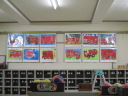 5年生は、クレパスやパステル、絵の具を使って、表し方の工夫をしました。たたんでできた模様、網をこすってできた模様、ビー玉を転がしてできた模様等、それらを色や形が響き合うように構成し、創造的な表現になりました。自分のイメージした世界を伝え合い、互いの良さを認め合っていきます。 |