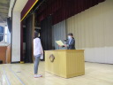 卒業式会場準備を教職員とともに5年生が担いました。みぞれが降る寒い日でしたが、体育館の掃除、用具の片づけ、いす並べ等、てきぱきとすすんで行う姿から、5年生へバトンが引き継がれていく頼もしさを感じました。明日の予行練習は5年生も参加して、6年生の姿から学びます。最高学年への自覚が子供たちに育っていきます。 |