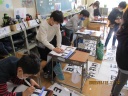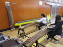 「日本の楽器でつながろう」という学習で、箏の演奏に取り組んでいます。爪の当て方や姿勢に気をつけて「さくら さくら」に挑戦です。グループの中でそれぞれ役割があり、交代しながら協力して練習しています。先生の説明をしっかり聞いて、だんだん良い音を出せるようになってきました。日本の楽器にも親しみながら楽しく学習しています。 |
