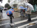 荻窪警察署の警察官と学校支援本部の方々の協力のもと、実際に歩道橋や横断歩道を歩いて、安全な歩行の仕方を学習しました。信号は黄色で止まること、手を挙げて運転手から見えるようにすること、歩く時ふざけないこと、をしっかり頭に入れて、これから交通安全に気を付けて登下校してくださいね。自分の命を守るのは、自分です! |