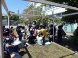 子供たちは、井草音頭を作るときにお世話になった地域の方々をお招きして、完成した歌と踊りを発表しました。オンラインで、「ふれあいの家」の方々にも見ていただくことができました。各クラスで作った歌詞の説明と踊りの動きを説明した後、地域の方々と一緒に輪になって踊りました。開校当時の地域を知っている方々、地域で活躍している方々、そして地域を引き継ぎ未来の担い手となる子供たち、一堂に会して交流することができた貴重な時間でした。ゲストティーチャーの皆さんにほめていただき、井草の探求学習を達成感をもってまとめることができました。 |