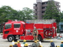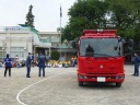 暑くも寒くもなく、程よく曇って写生会日和です。荻窪消防署から1・2年生の写生会のために来ていただきました。子供たちは、消防車と消防士さんを間近でよく見て、一生懸命描きました。「みんな上手ですね。毎年来ていますが、子供たちの絵を見るのが楽しみです。」と消防士さんに言っていただき、うれしいです。消防署の仕事も、3・4年の社会科でしっかり勉強します。 |