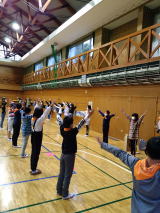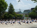 雨降りの一日でしたが、体育館は窓をしっかり開けています。毎朝、当番の先生が窓を開けて換気に気を配ります。どの学年も一生懸命練習しています。5年生はソーラン節に挑戦。速い動きを力強く表現できるよう、腰を落としてがんばっています。本番でかっこよく踊る姿が楽しみです。