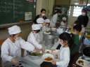 「いただきます!」1年生の皆さん、モリモリ食べて、大きくなりましょう。 |