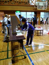 文部科学省の実施要領に基づき、日本の小中学校では体力テストを行います。写真は、5年生のソフトボール投げと、6年生に手伝ってもらう1年生の立ち幅跳びの様子です。来週にかけて、握力、長座体前屈、20mシャトルラン、上体起こし、反復横跳びを進めます。ハチナリンピックが終わっても、健康や体力向上に関心をもっていきましょう。 |